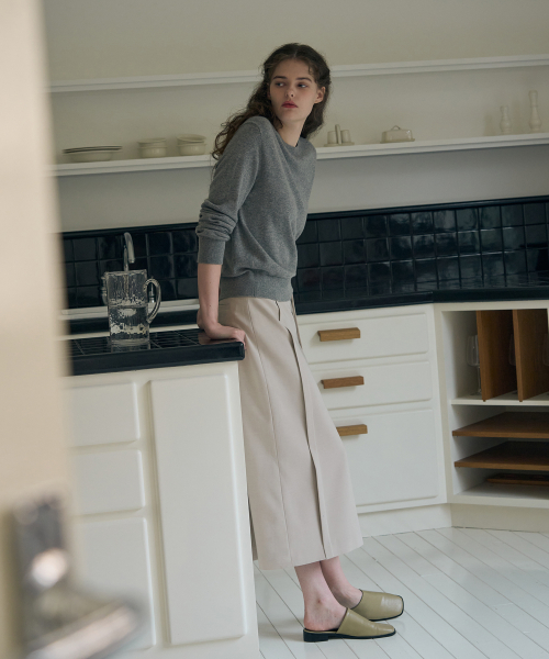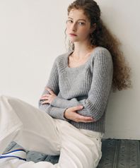 알파카 볼륨 슬리브 스퀘어 골지 니트 [L.GREY]