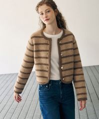 스트라이프 플러피 울 니트 자켓 [BEIGE]