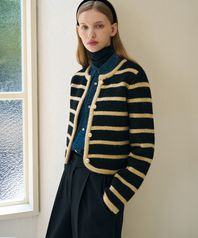 스트라이프 플러피 울 니트 자켓 [BLACK]
