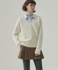 헤어리 울 브이넥 풀오버 니트 [IVORY]