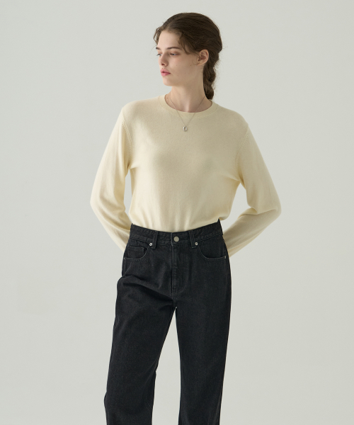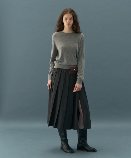 소프티 캐시 울 블렌디드 라운드넥 니트 [M.GREY]