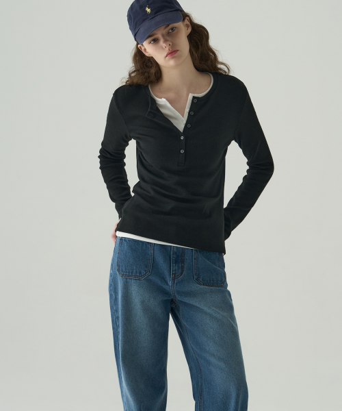 웨일 헨리넥 롱 슬리브 티셔츠 [OLIVE]