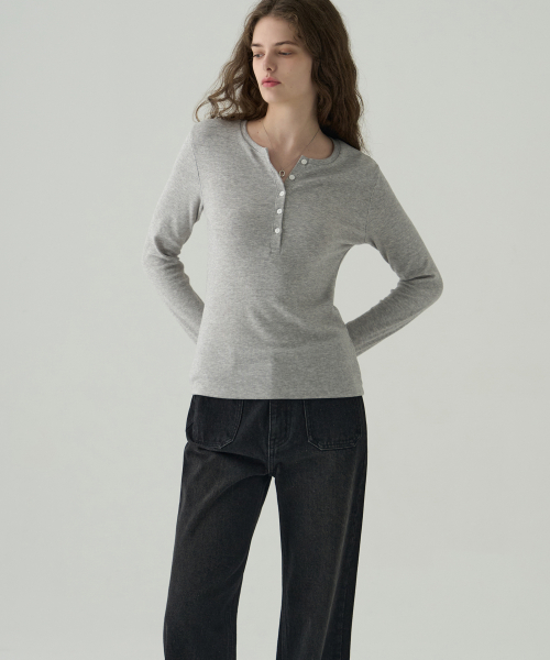 웨일 헨리넥 롱 슬리브 티셔츠 [L.GREY]