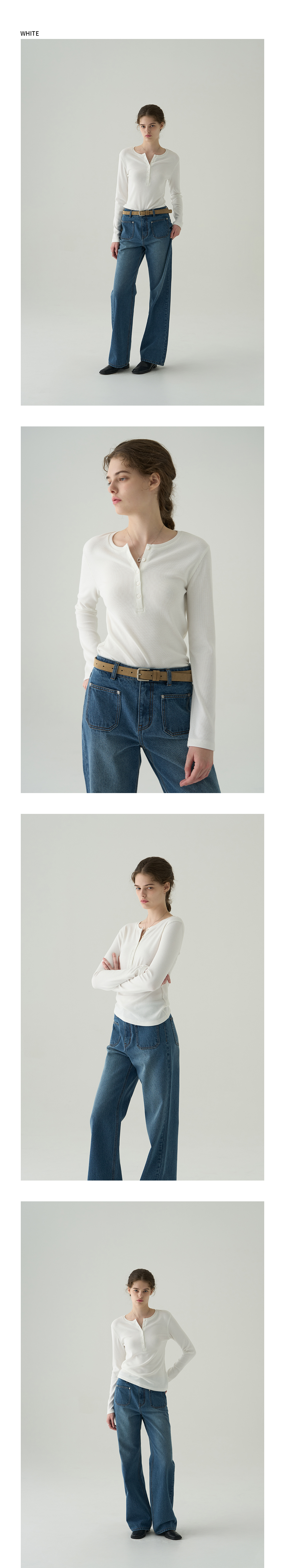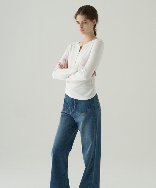 포켓 헨리넥 리브드 롱슬리브 화이트