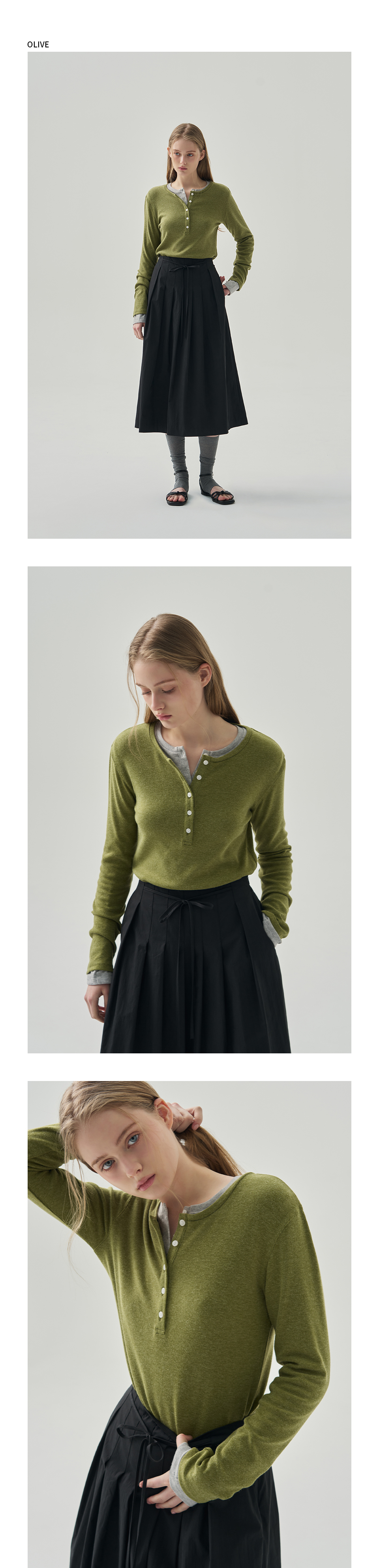 웨일 헨리넥 롱 슬리브 티셔츠 [OLIVE]
