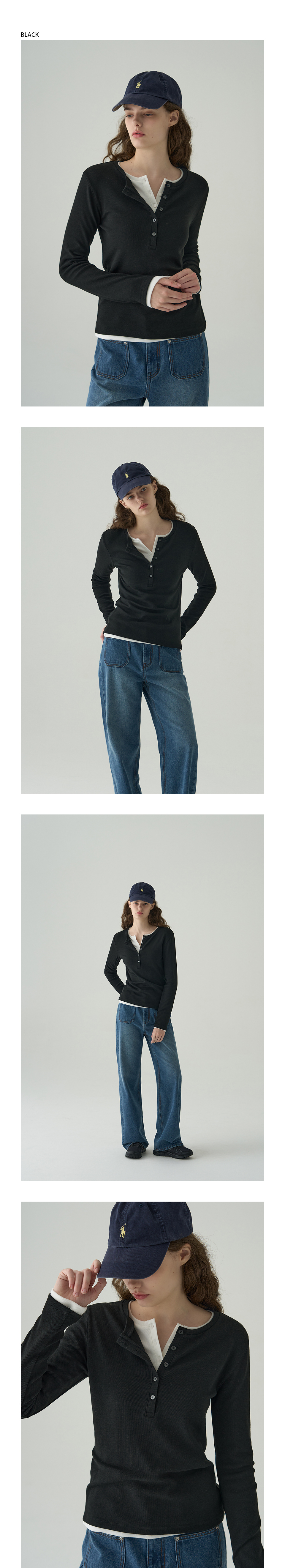 웨일 헨리넥 롱 슬리브 티셔츠 [BLACK]