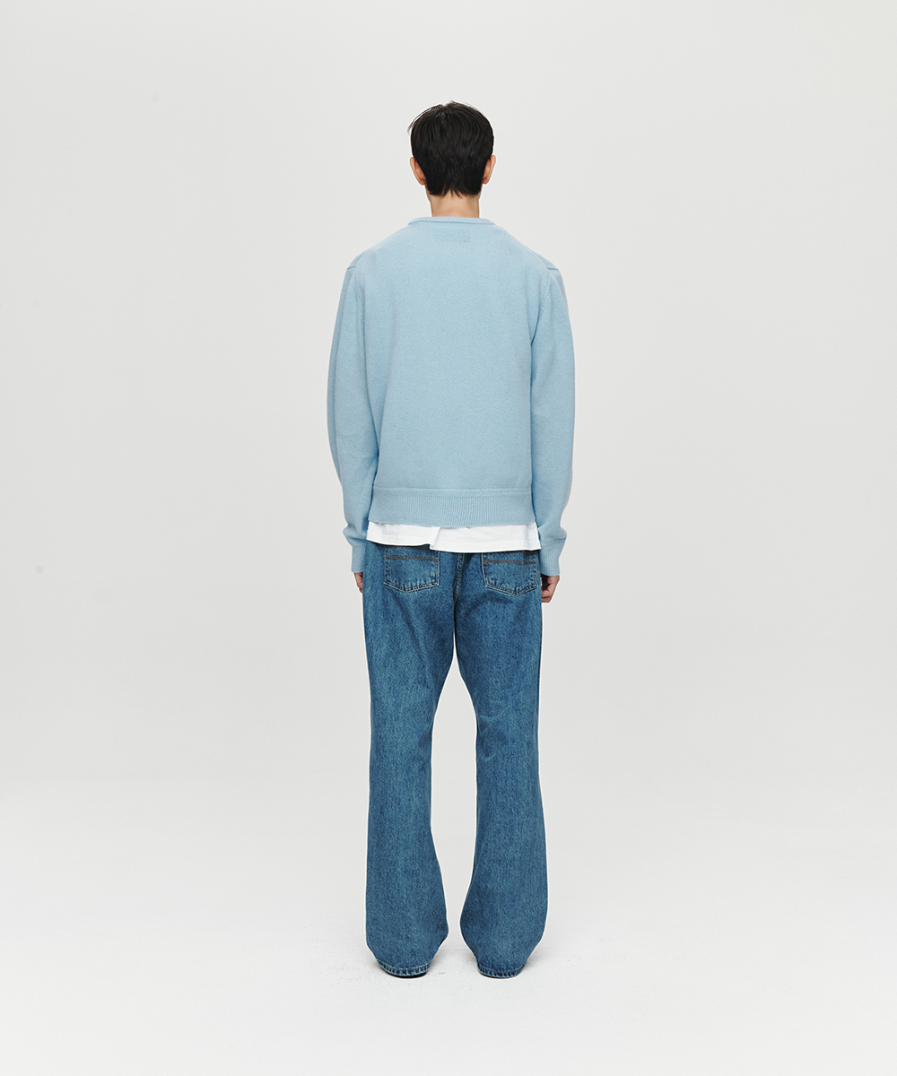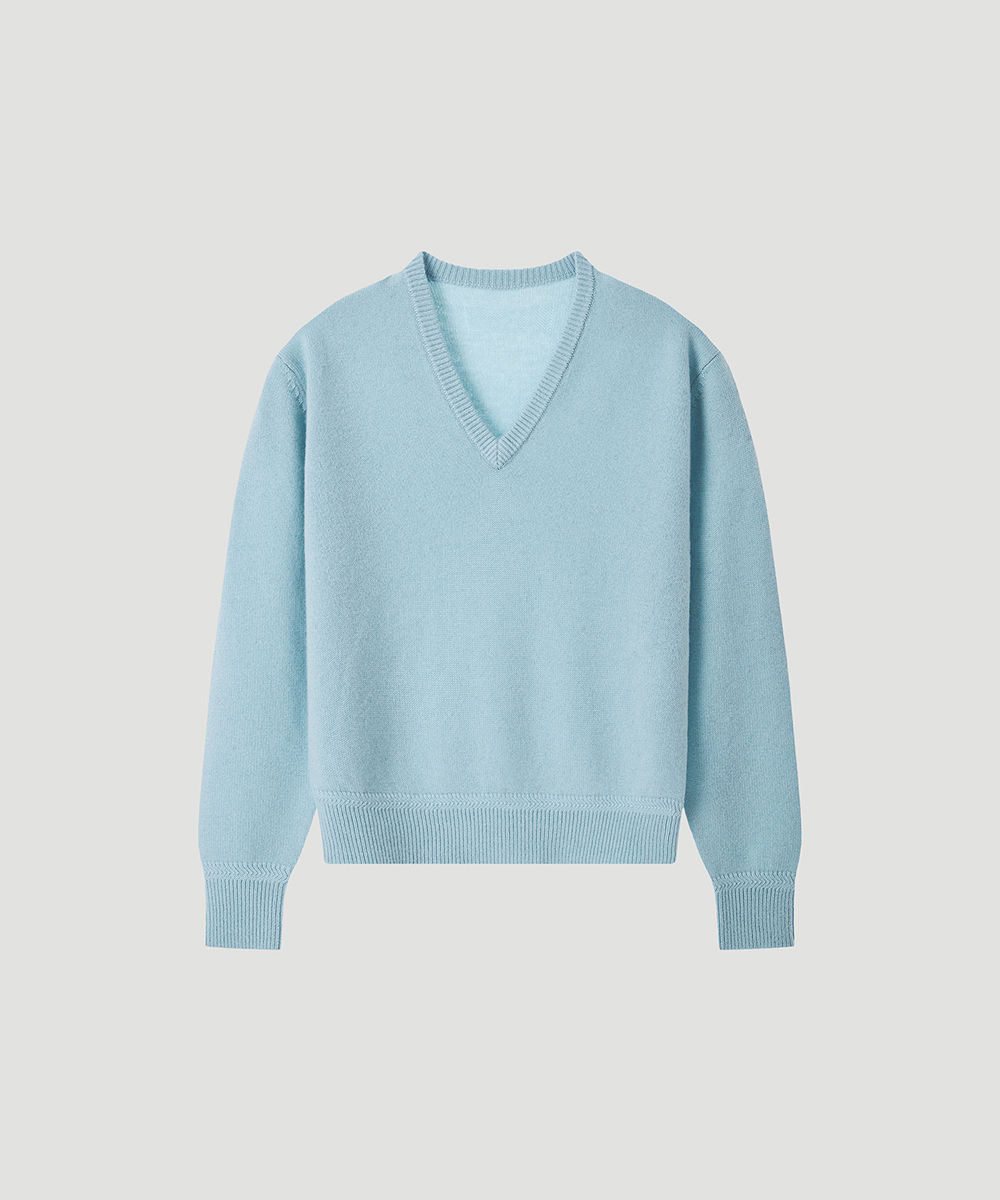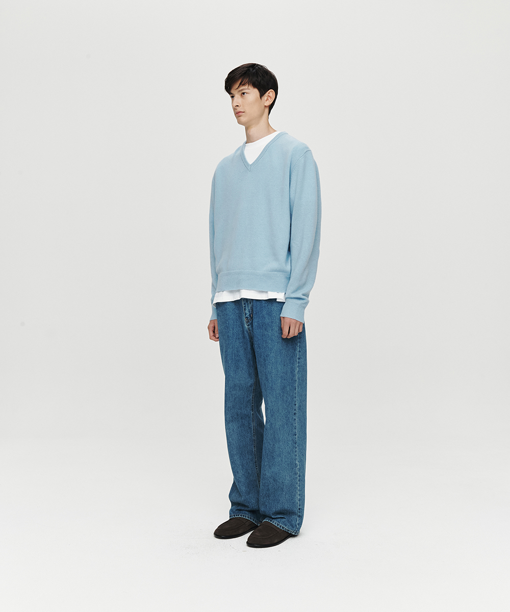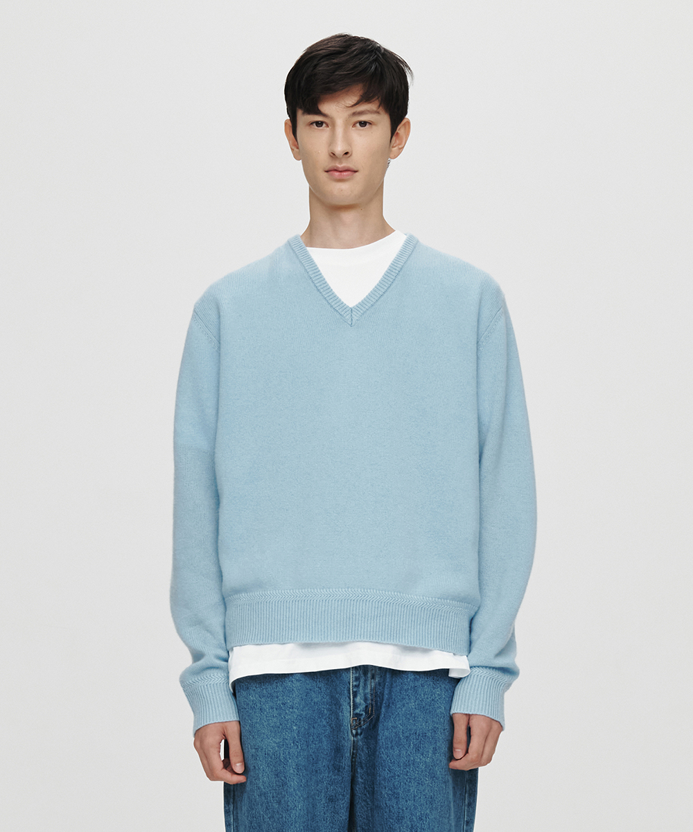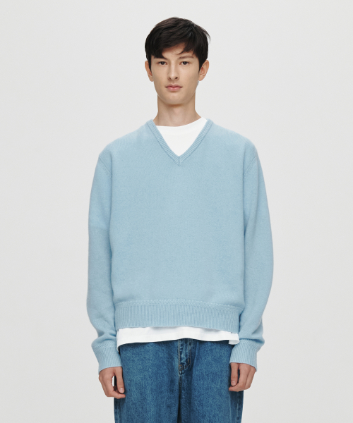 CASHMERE WOOL V NECK KNIT (BLUE)