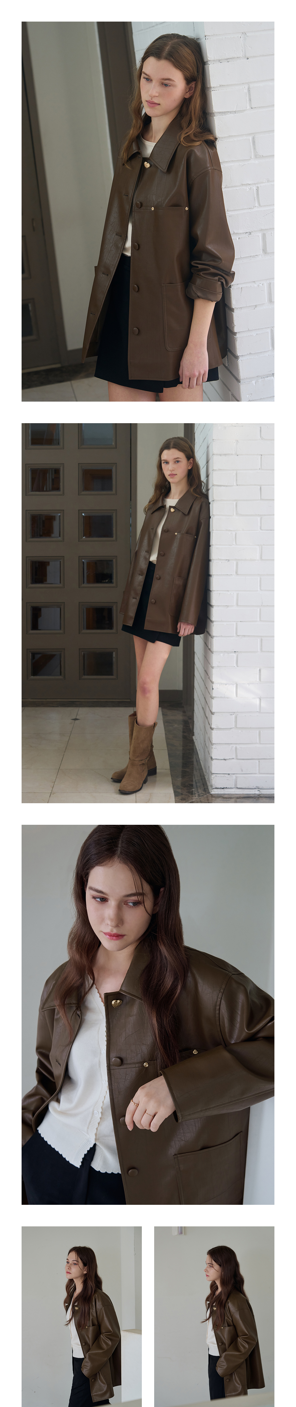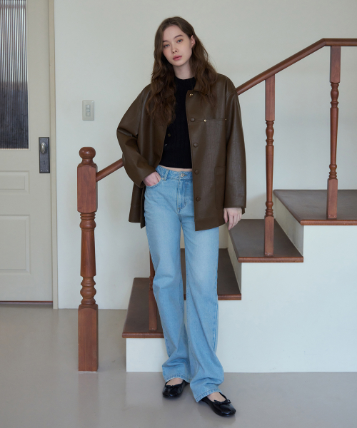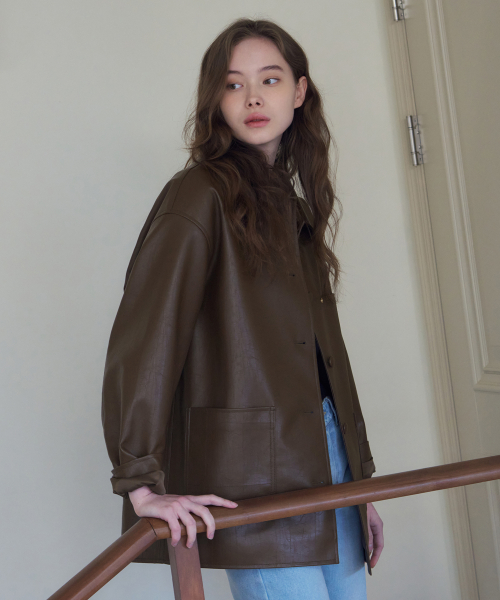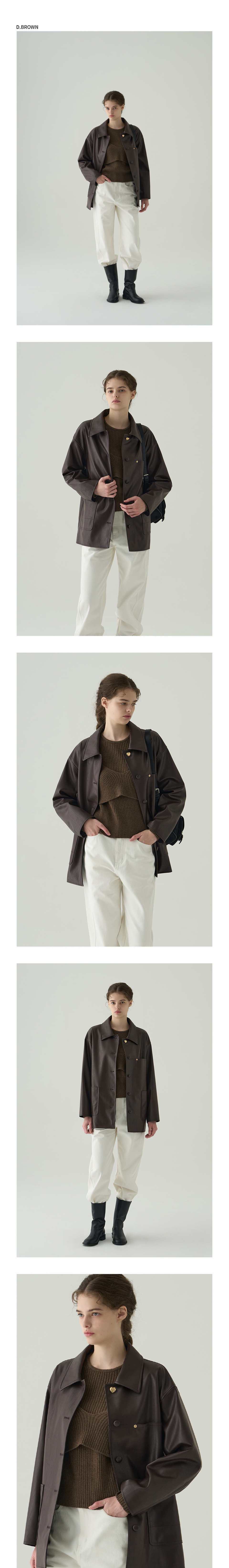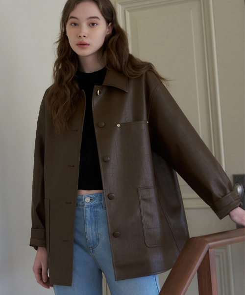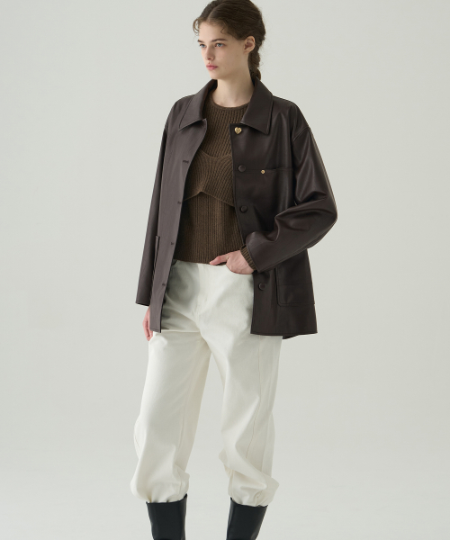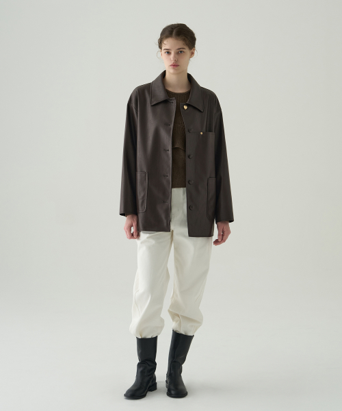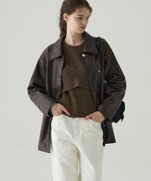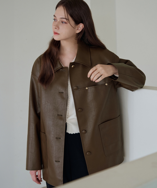 버튼 레더 하프 자켓 [D.BROWN]