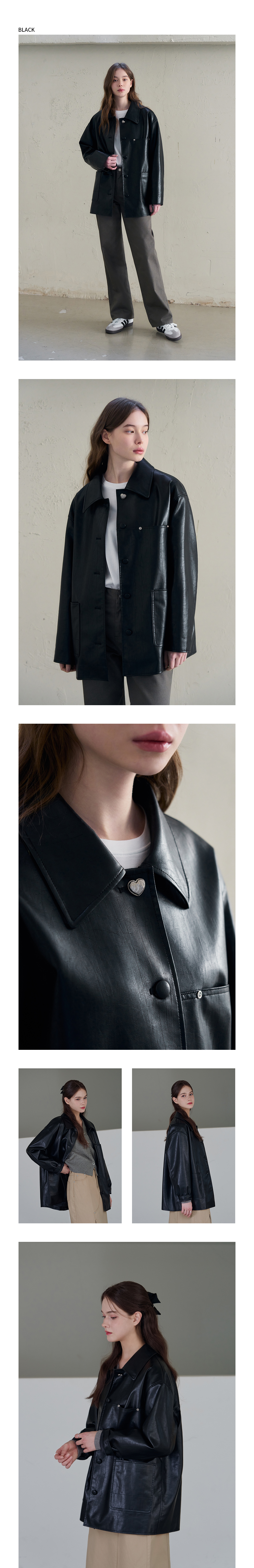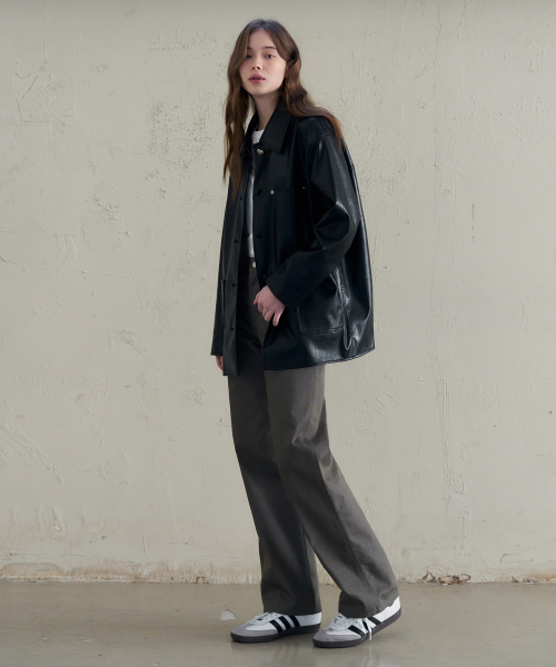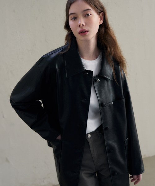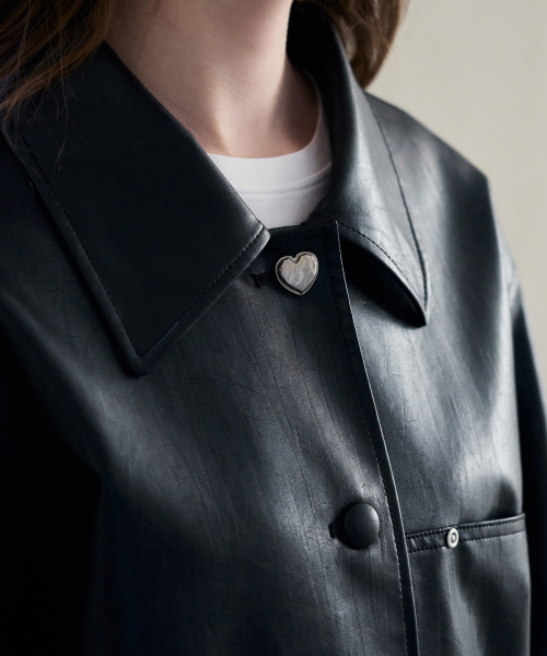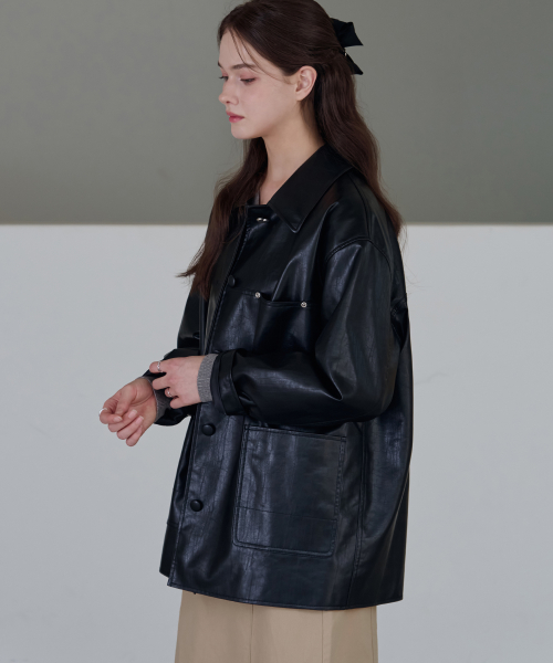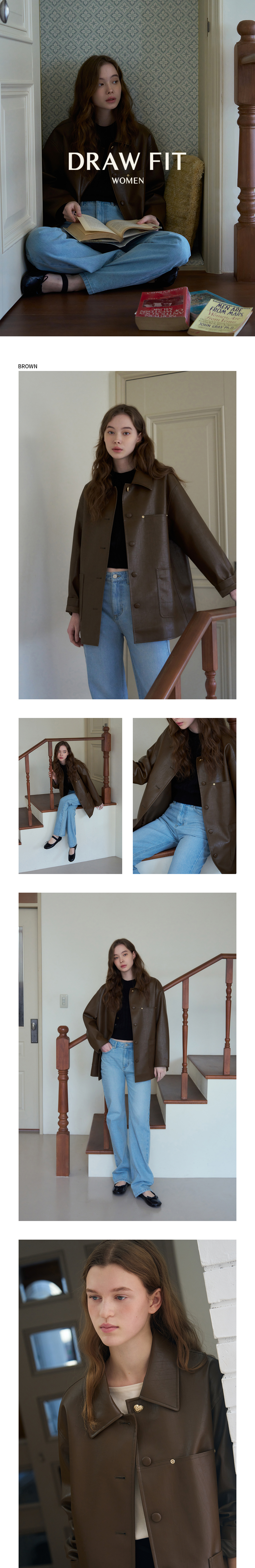 버튼 레더 하프 자켓 [D.BROWN]