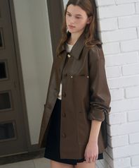버튼 레더 하프 자켓 [BROWN]