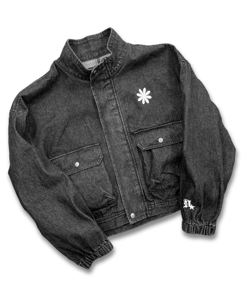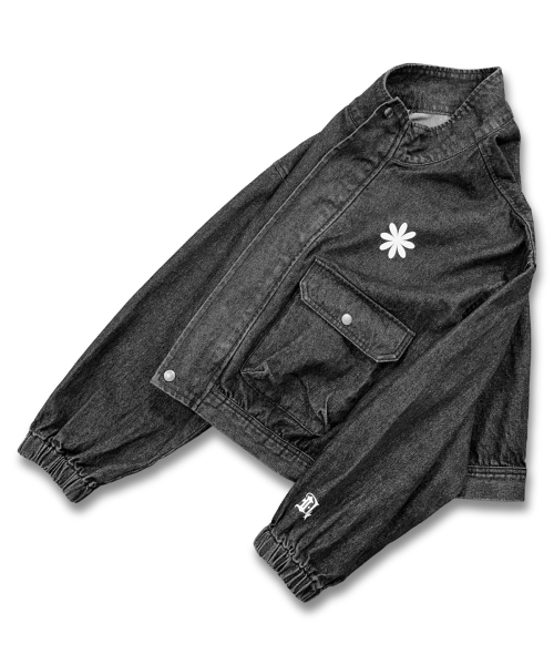 FLOWER APLIQUE RAGLAN SWEATSHIRT(BLACK)