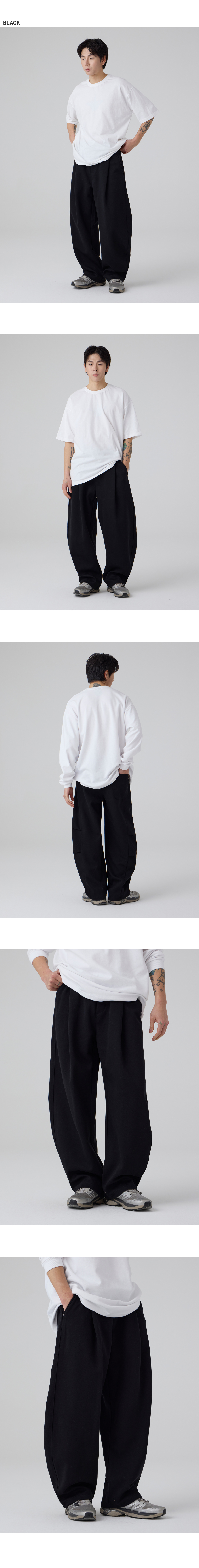 커브드 사이드 핀턱 벌룬 스웨트팬츠 GLP-650_블랙