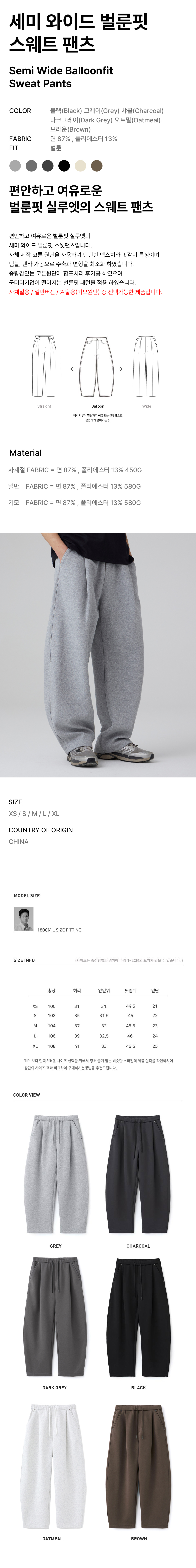 [기모버전추가] 세미 와이드 벌룬핏 스웻팬츠 6color