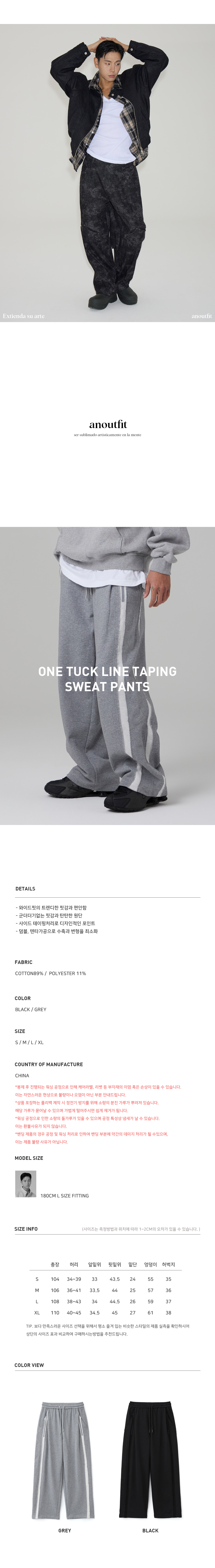 원턱 라인 테이핑 스웻팬츠 블랙