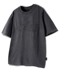 아플리케 자수 피그먼트 반팔티 스모크블랙 YT-306