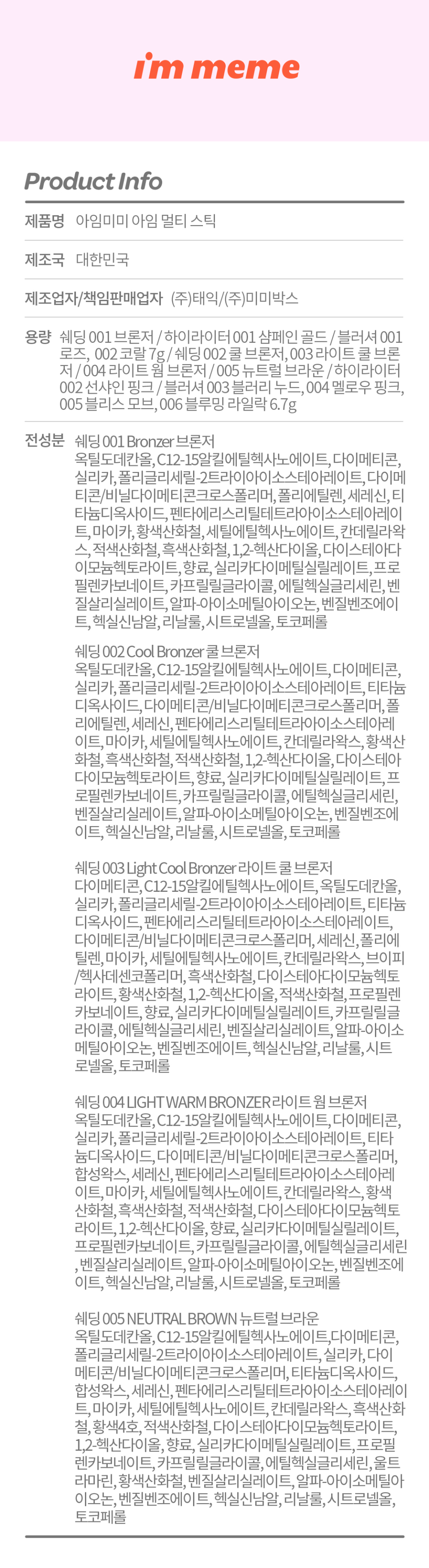 아임미미(I'M MEME)는 언제 어디서나 자신 있는 표현을 위한 쉽고 재미있는 메이크업을 선사합니다.