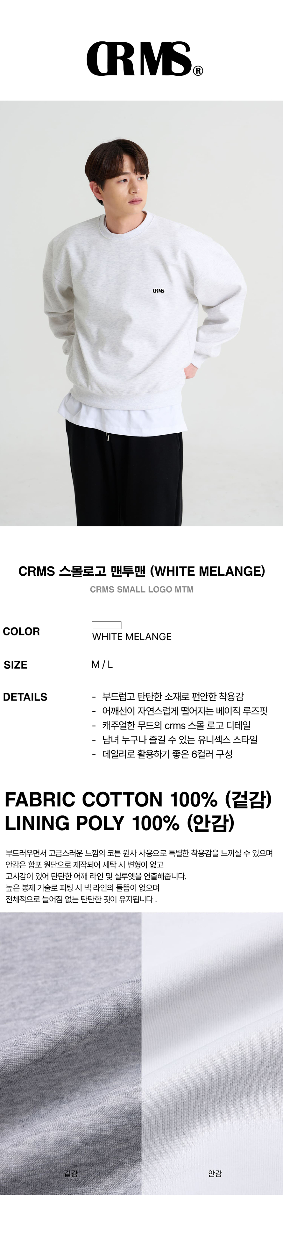 CRMS 스몰 로고 맨투맨 (White melange)
