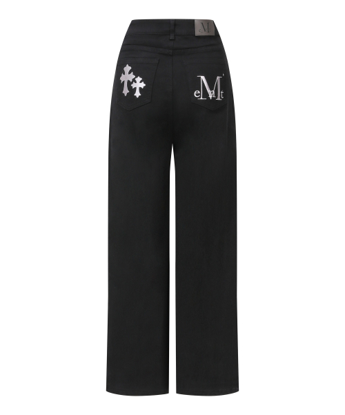 피스톨 백 레더 더블 크로스 와이드 코튼 팬츠