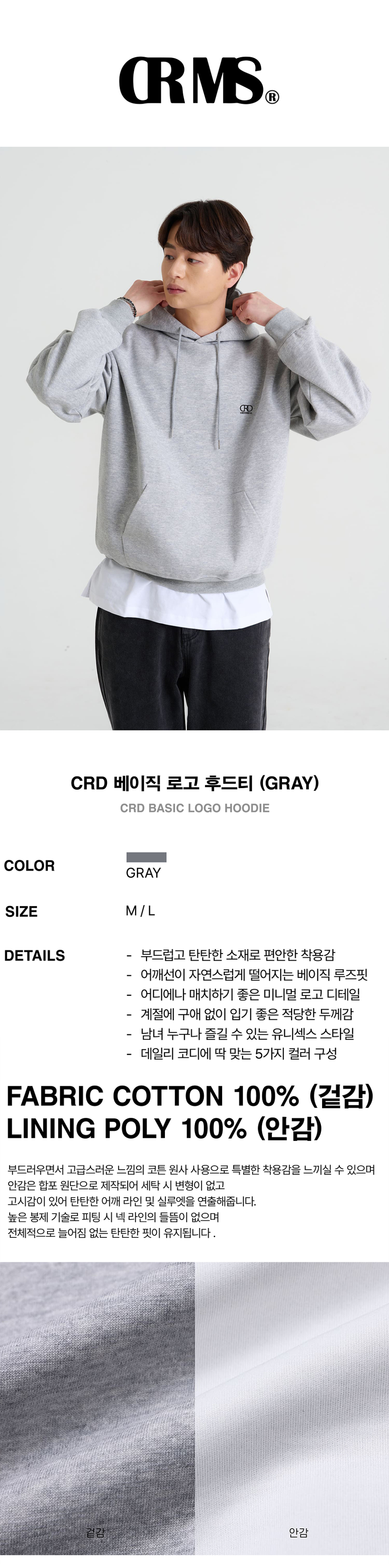 [기모/논기모]CRD 베이직 로고 후드티(Gray)