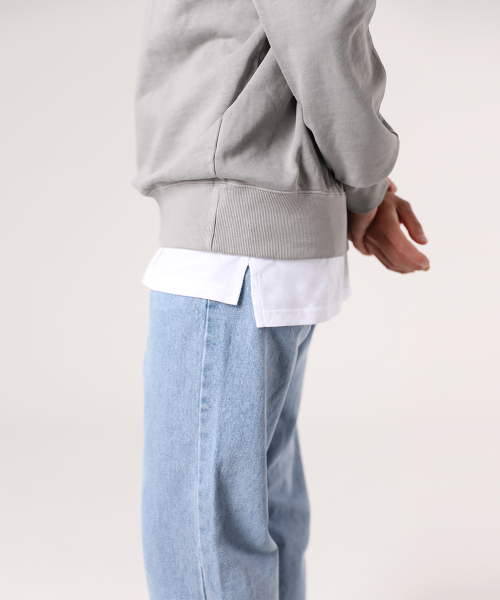 레이어드 크루 넥 긴소매 티셔츠_일반 기장 [화이트]