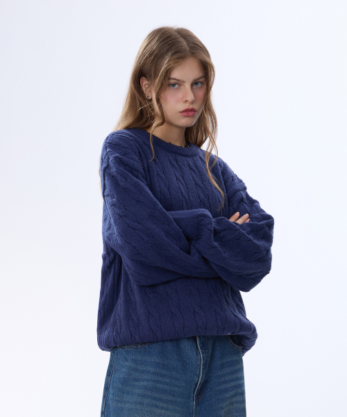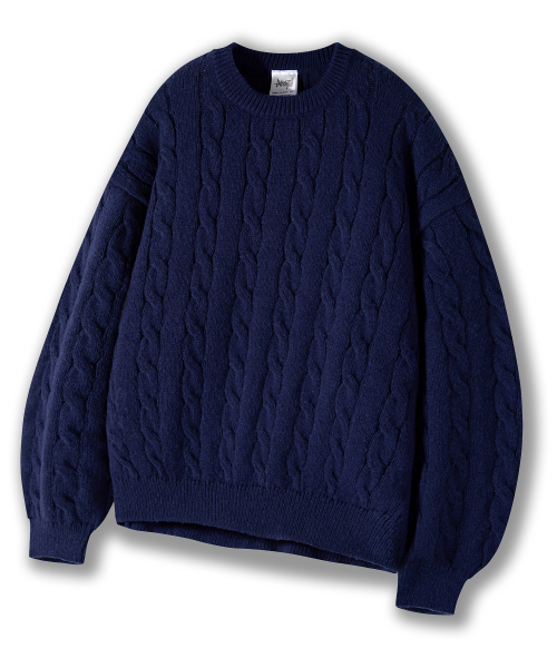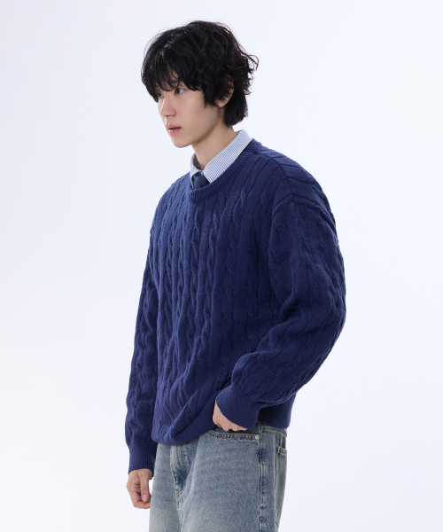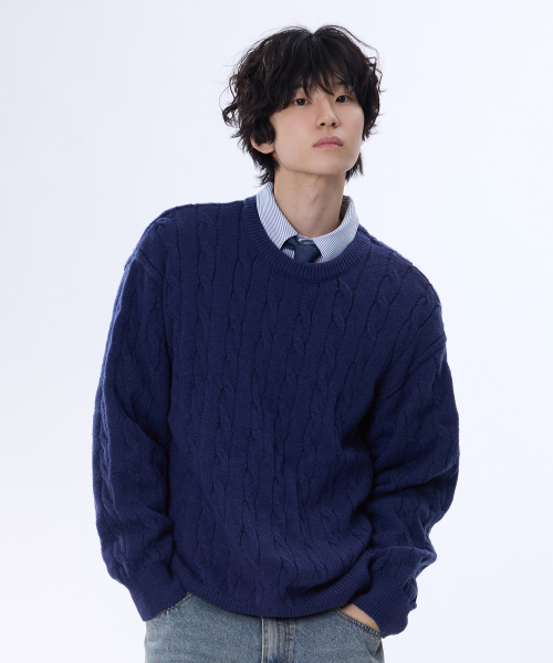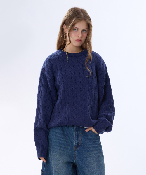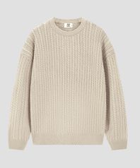 크루넥 오버핏 케이블 스웨터 니트 [베이지]
