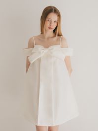 브라이덜 오프숄더 테일 미니 드레스_아이보리