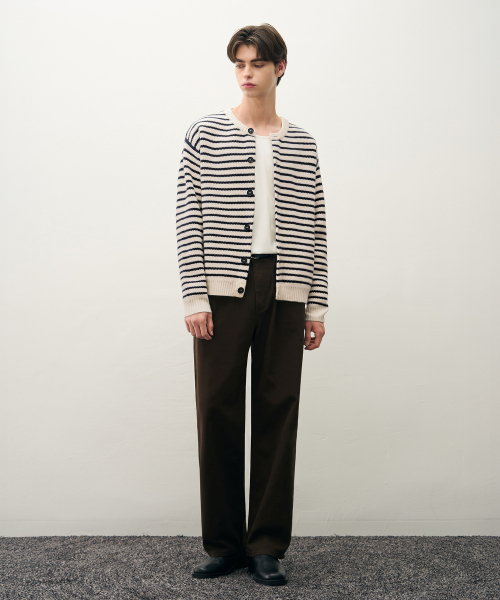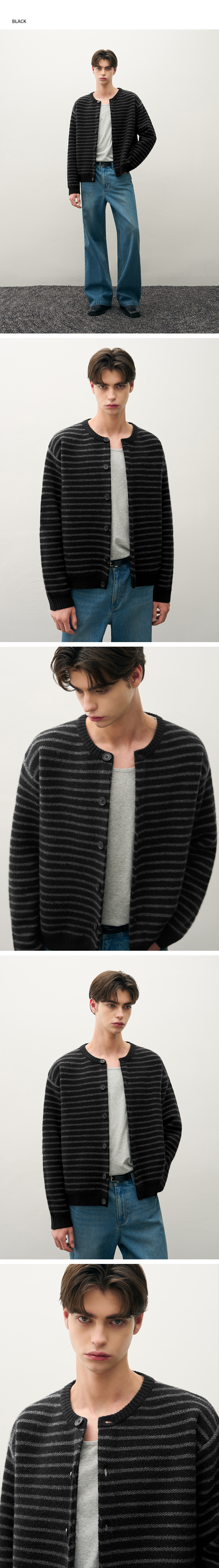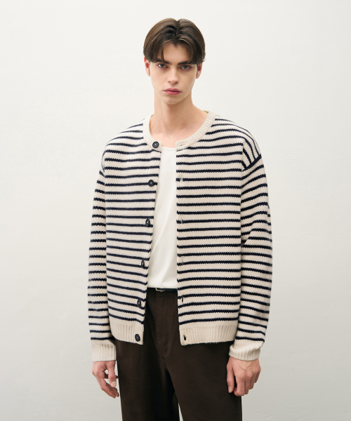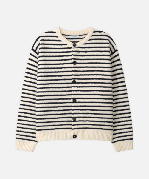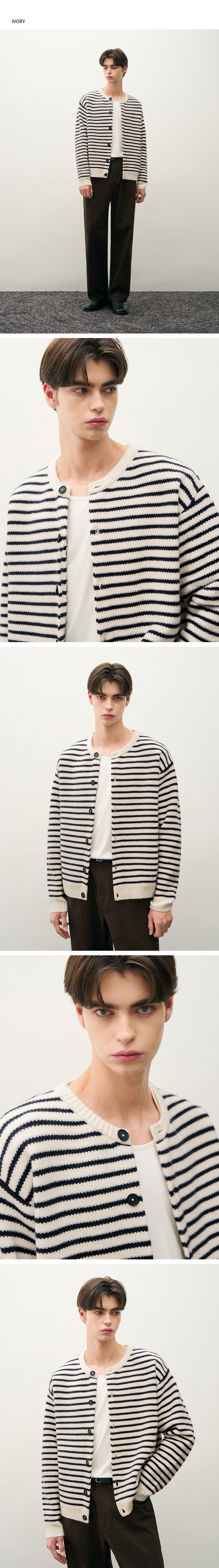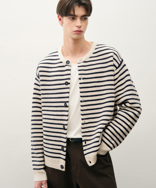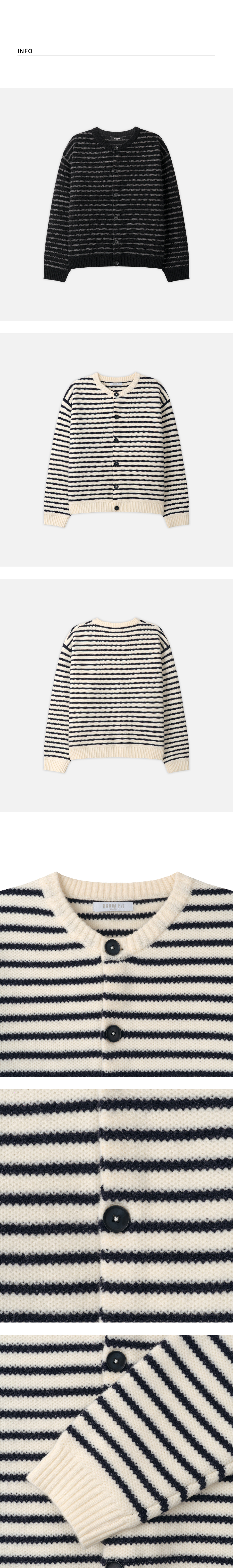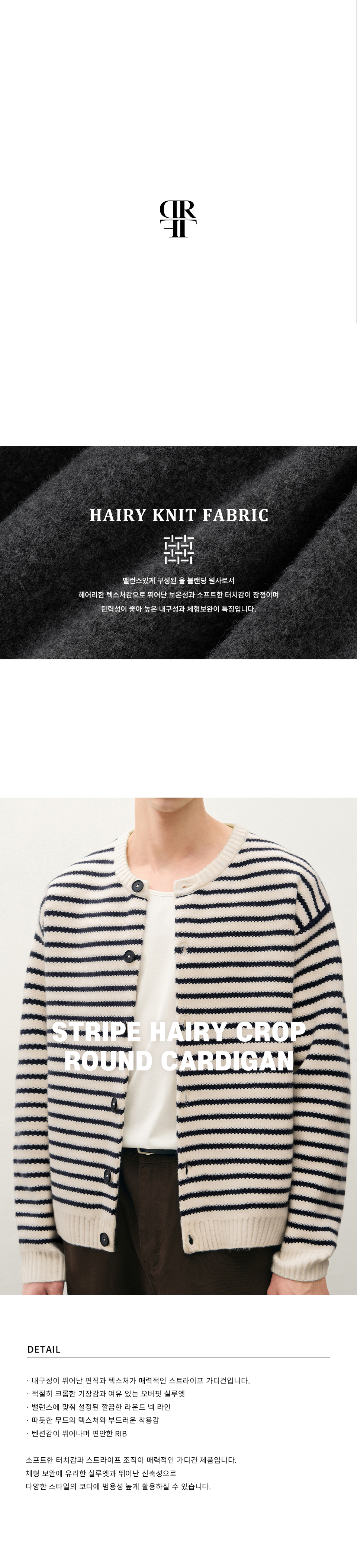 스트라이프 헤어리 크롭 라운드 가디건 [IVORY]