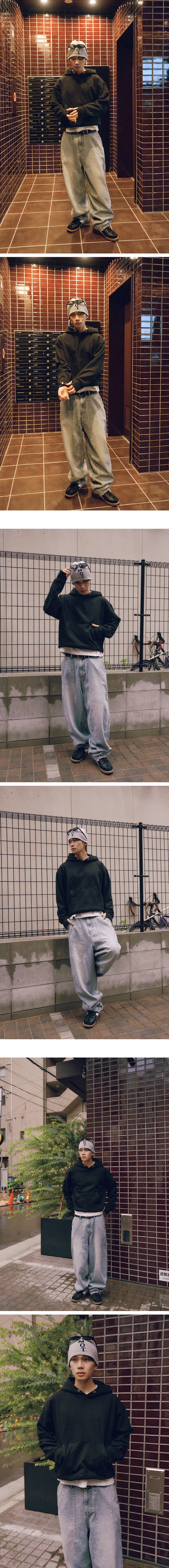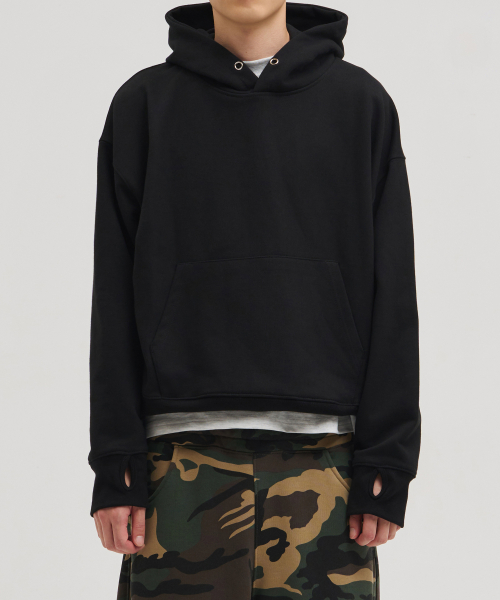 풀 집 핑거 홀 스웨트 셔츠 [블랙]