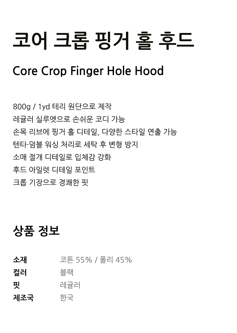 코어 크롭 핑거 홀 후드 [멜란지 그레이]