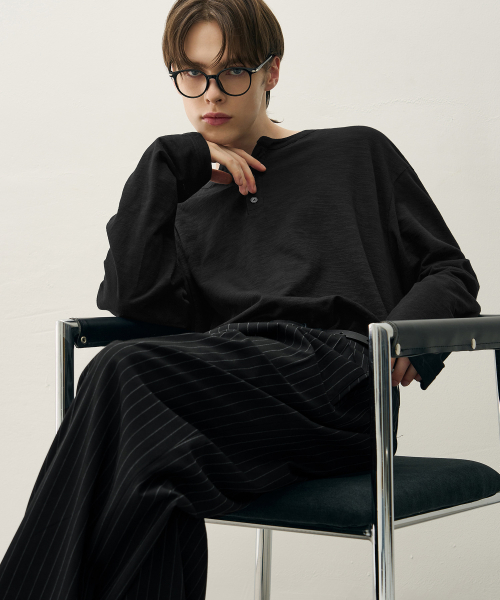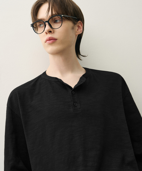 [서강준 PICK] 코튼 와플 헨리넥 티셔츠 [BLACK]