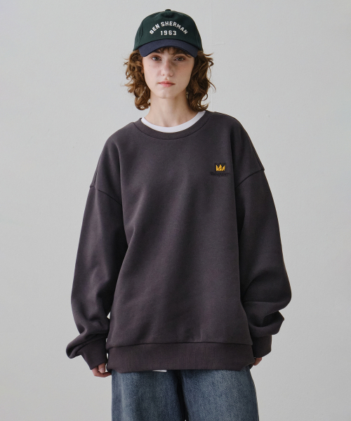 바스키아 시그니처 레터링 자수 기모 스웨트 셔츠 BPDTS487U