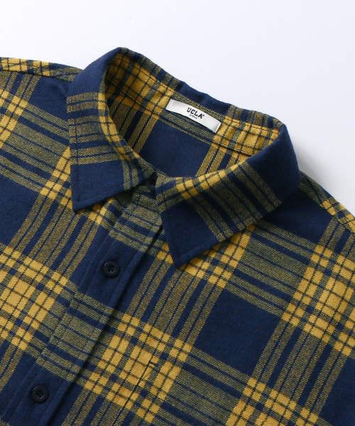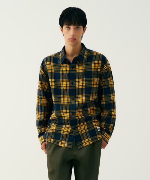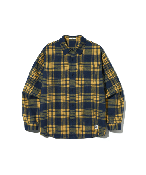 남녀공용 스트릿 심볼라벨 체크셔츠[MUSTARD](UB9LS21)