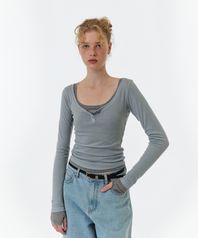 INA HENRY NECK T-SHIRT (LIGHT GREY)