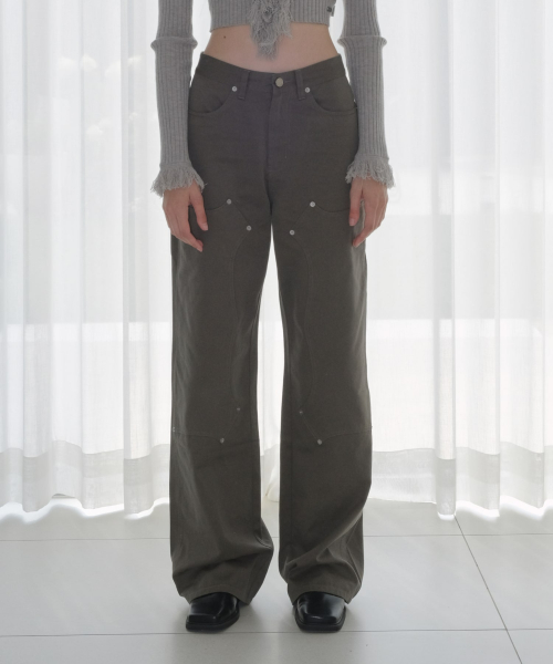 COTTON DOUBLE KNEE WIDE PANTS [CHARCOAL]