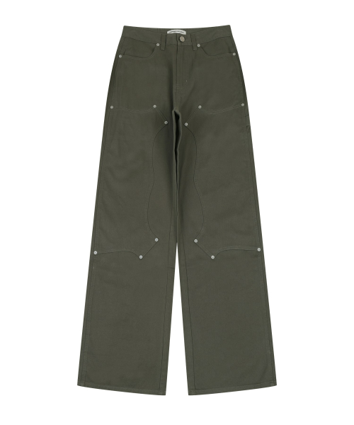 COTTON DOUBLE KNEE WIDE PANTS [KHAKI]