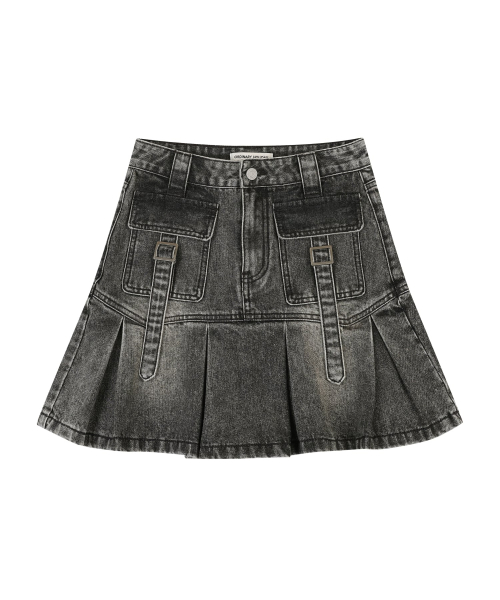 LOW DENIM MIDI SKIRT [GRAY]