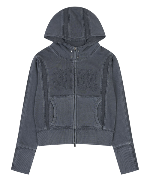 CORDUROY FLOWER ZIP UP HOOD(CHARCOAL)
