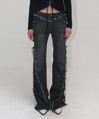 EYELET RAW-EDGE BOOTS CUT JEANS [BLACK]