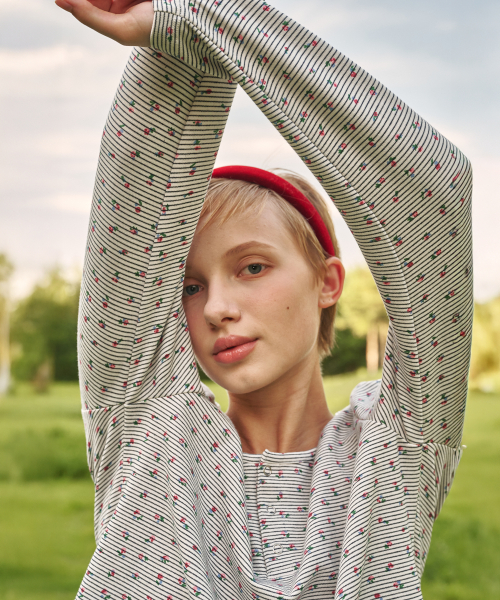(w)플로랄 로지 스트라이프 긴소매 티셔츠 블랙