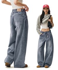 Cinchback Barrel Wide Leg Jeans DCWPT022BLUE