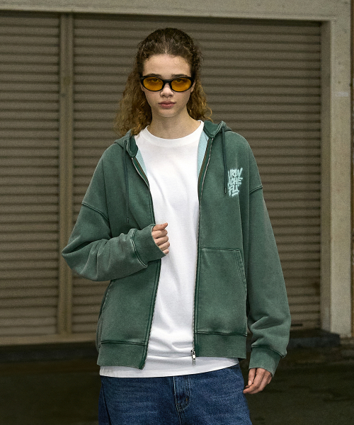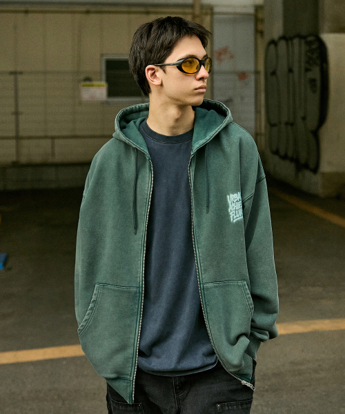 슬램로고 피그먼트 워싱 후드 집업 티셔츠 라이트네이비 FZT716-Z