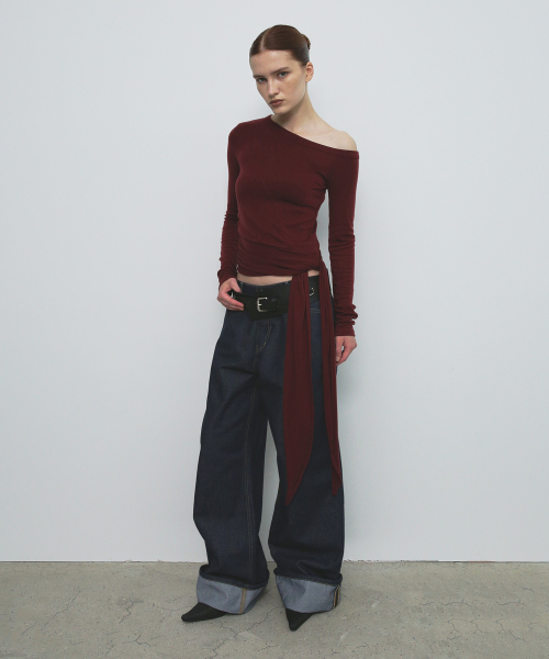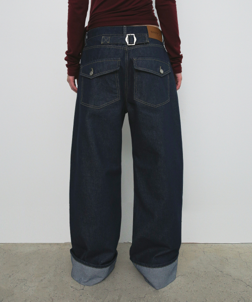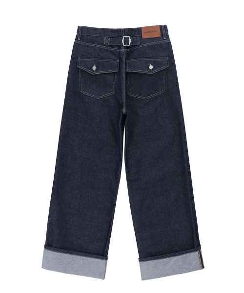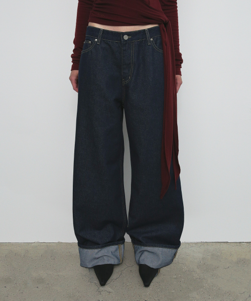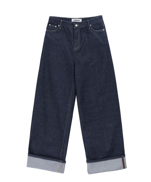 WIDE ROLL UP DENIM PANTS_DEEP BLUE