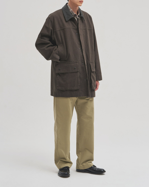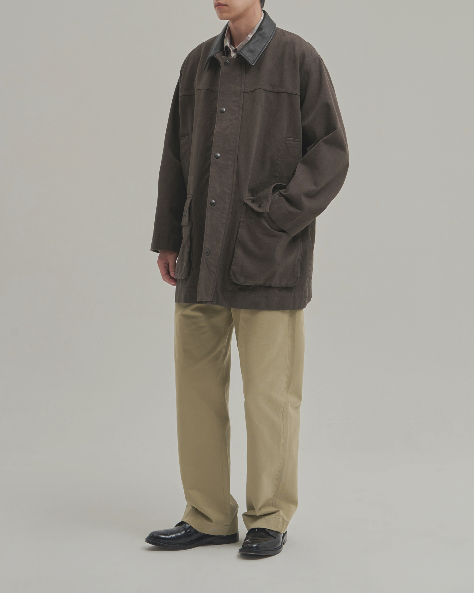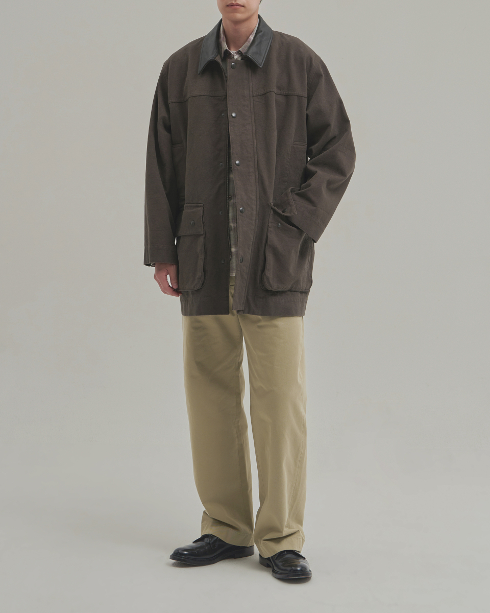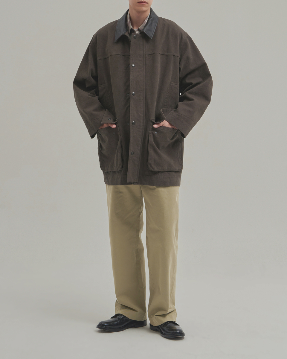 클래식 헌팅 자켓의 골격을 기반으로 밀도와 질감, 구조적 균형에 집중해 현대적인 감각으로 재구성한 아우터입니다.