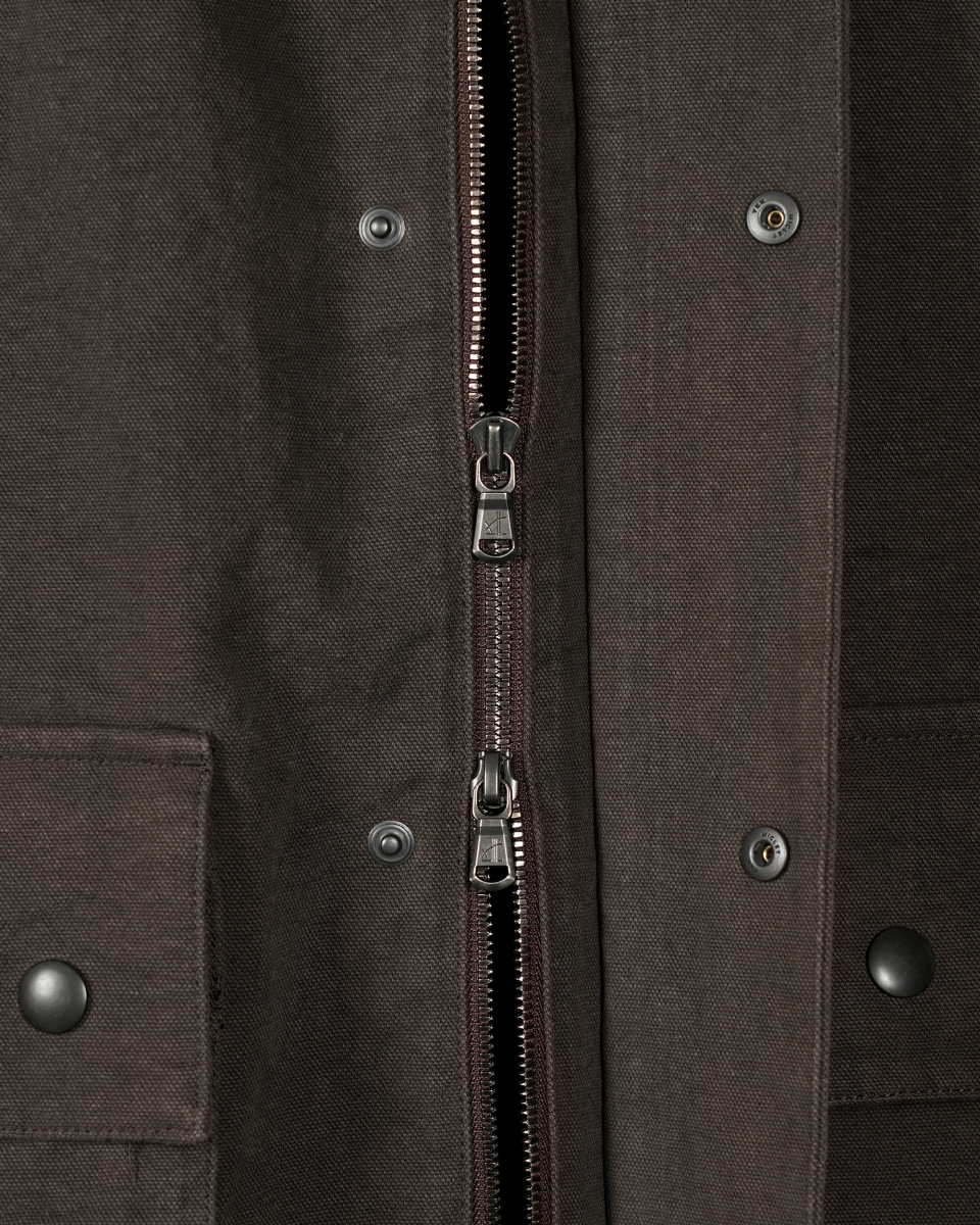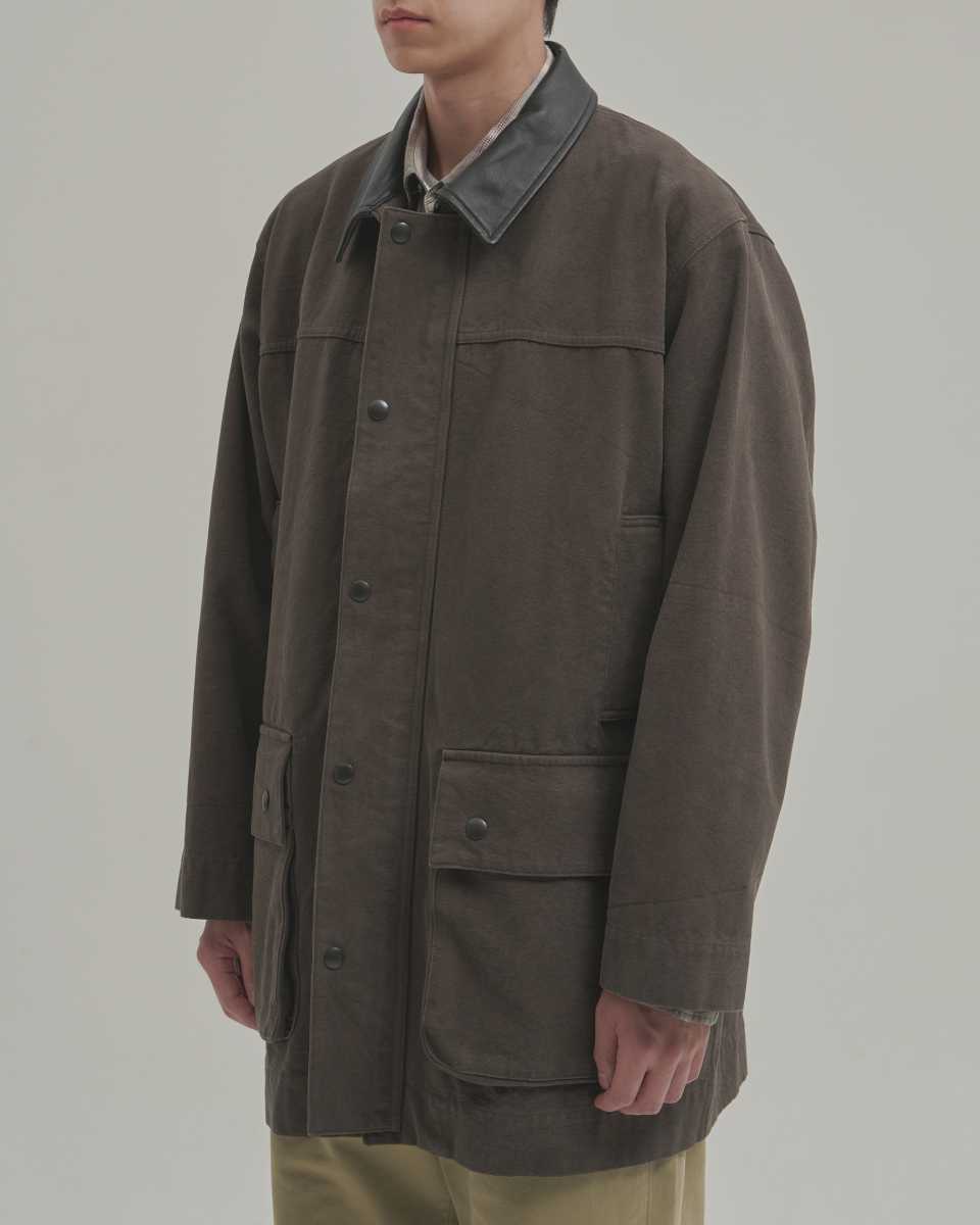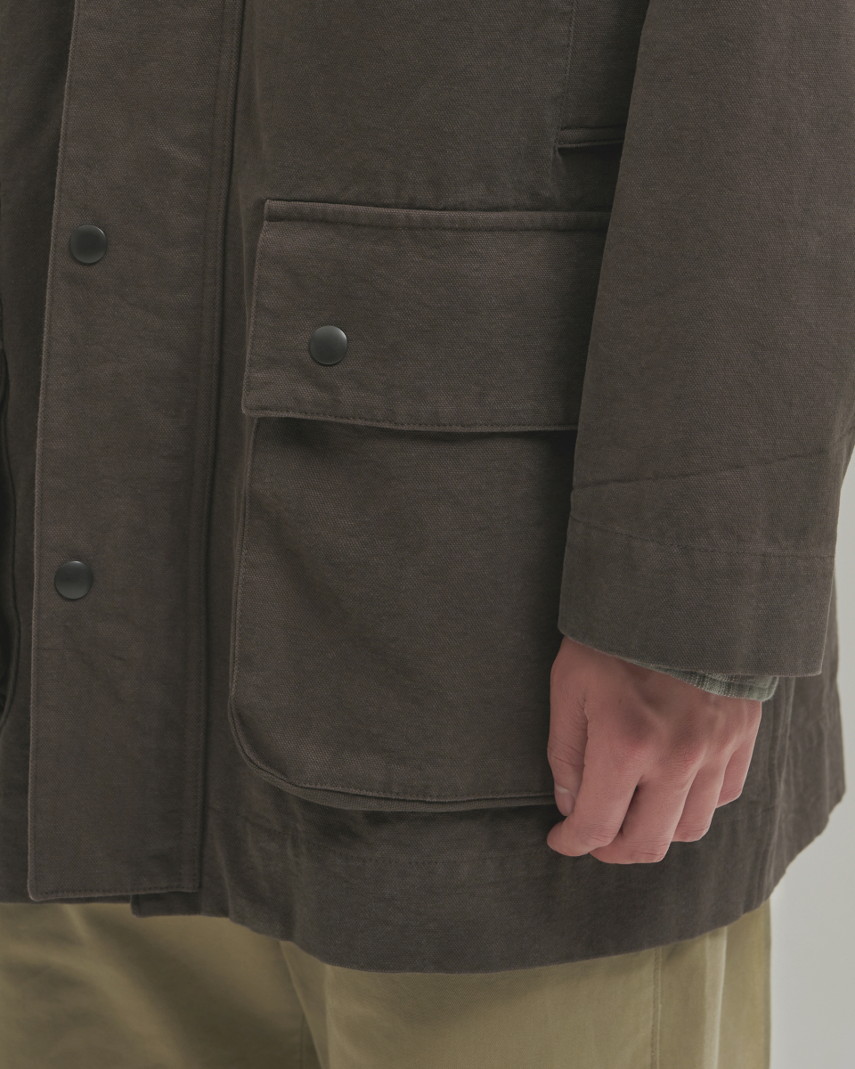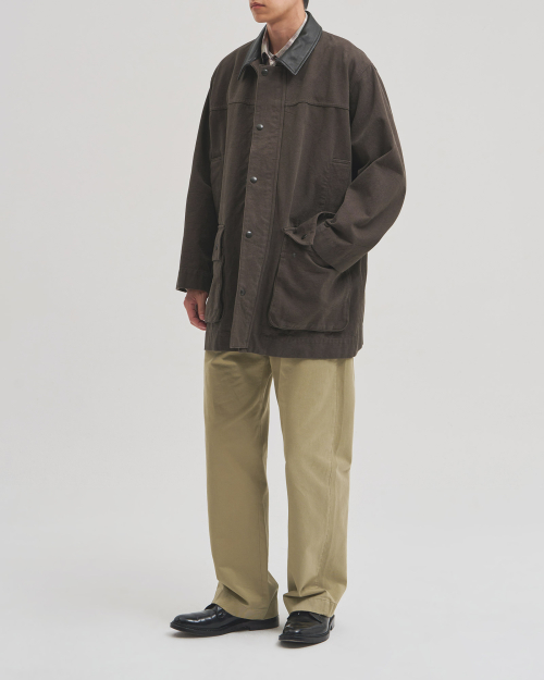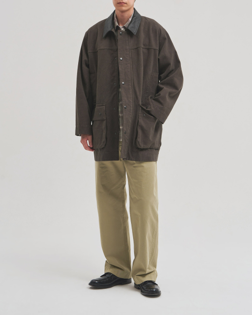클래식 헌팅 자켓의 골격을 기반으로 밀도와 질감, 구조적 균형에 집중해 현대적인 감각으로 재구성한 아우터입니다.