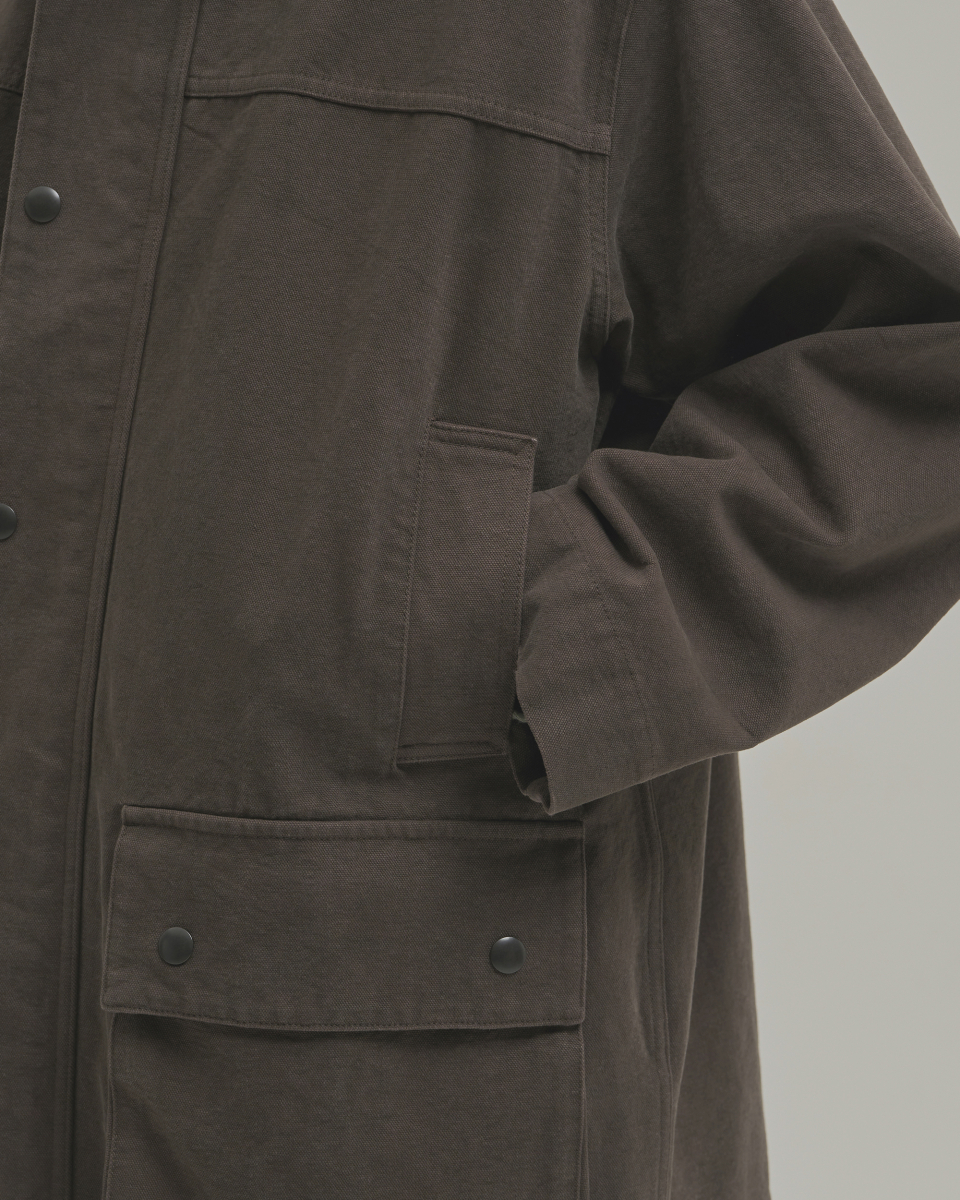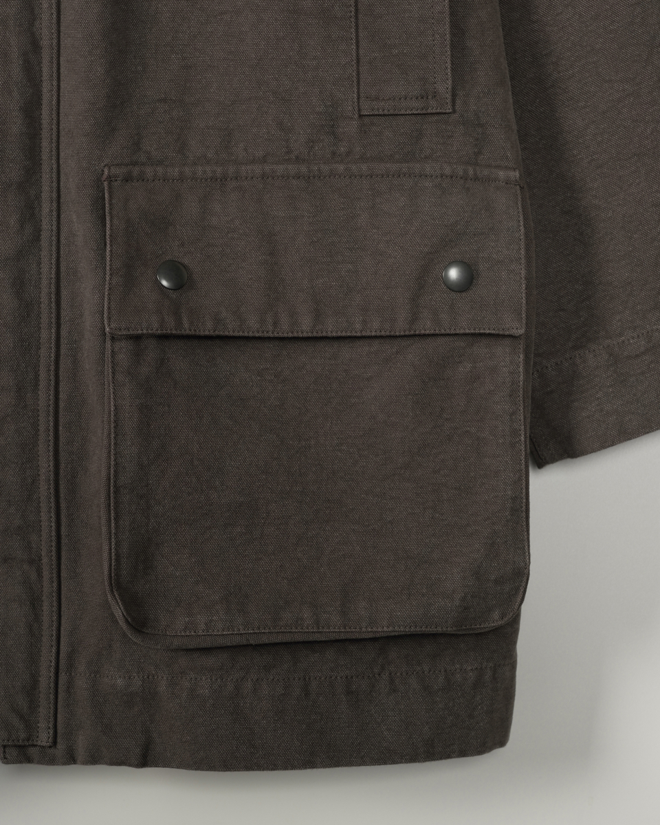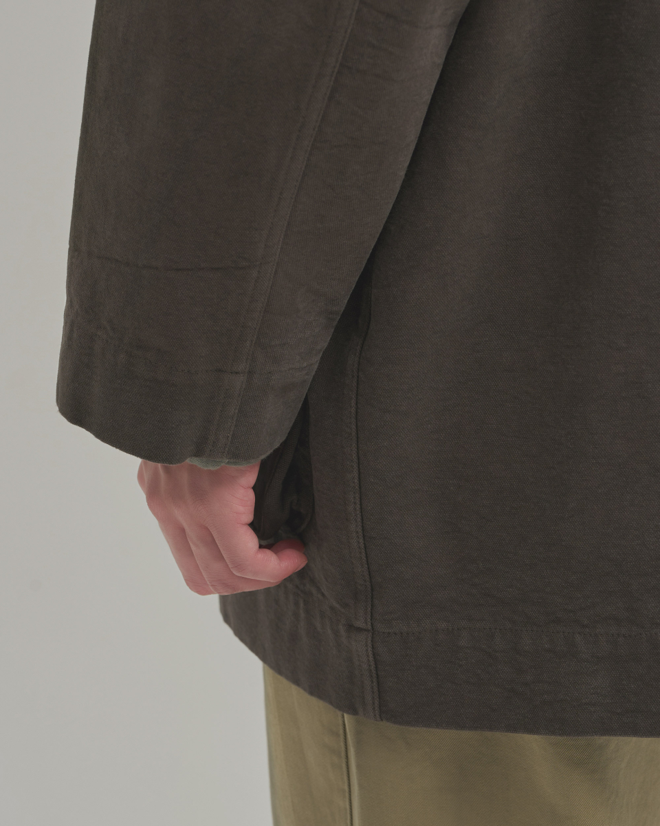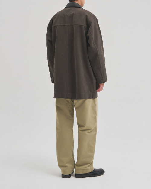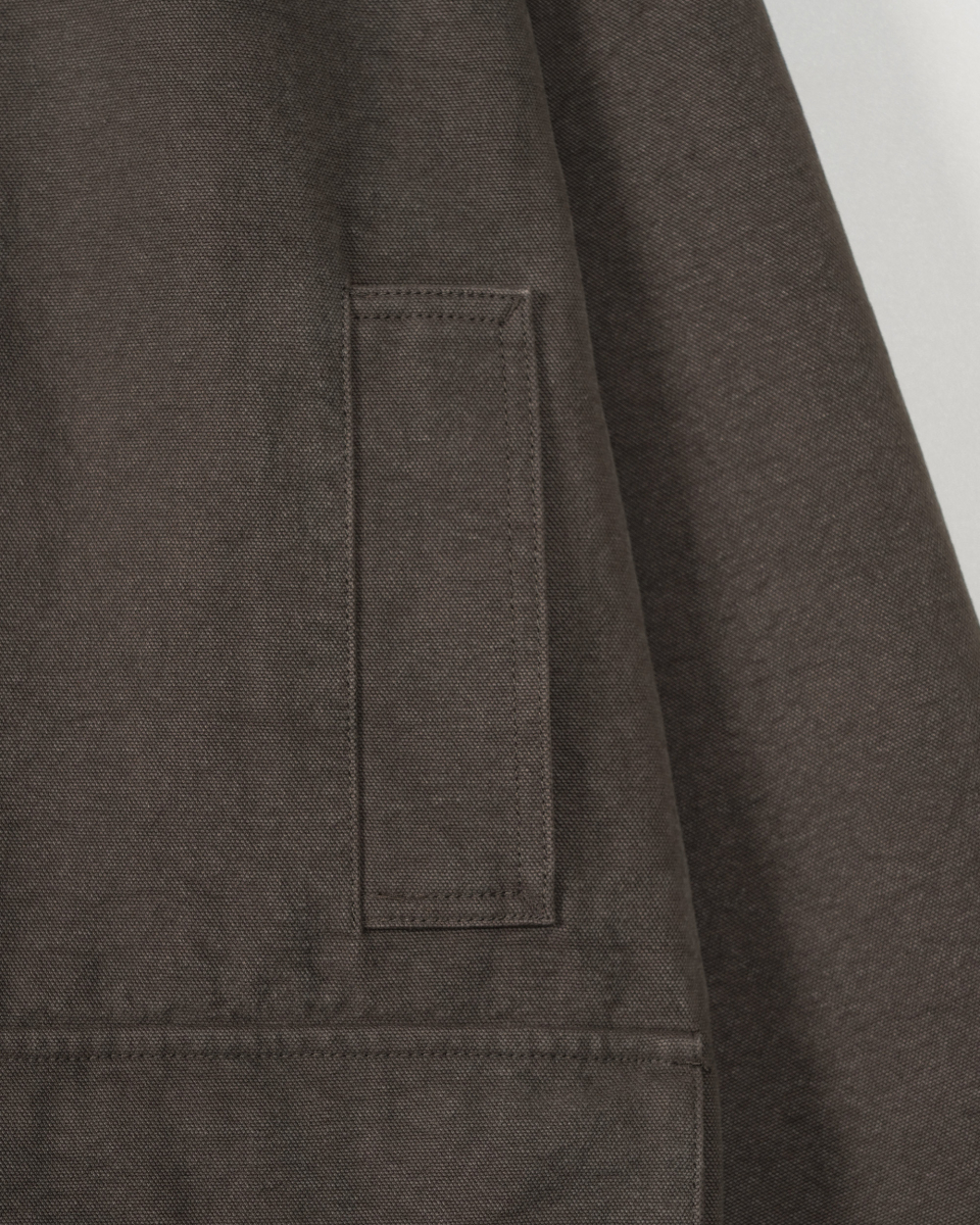 고밀도 7수 캔버스 조직의 소재에 피그먼트 다잉과 바이오 워싱, 가먼트 워싱을 순차적으로 더해 깊고 농도있는 컬러감을 구현했으며 시간이 지날수록 표면의 결이 드러나며 자연스러운 에이징이 더해지는 것이 특징입니다.