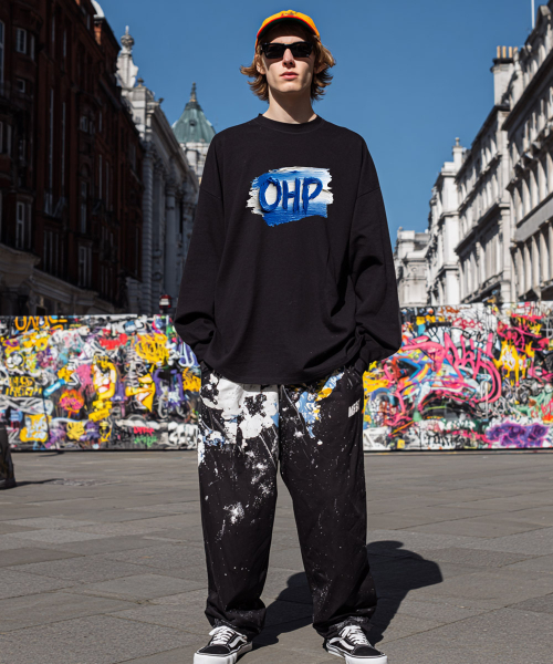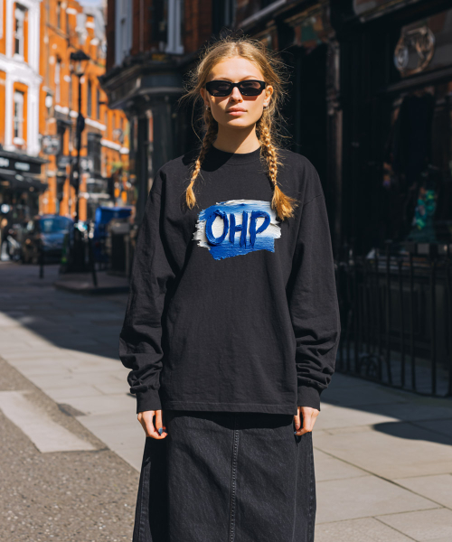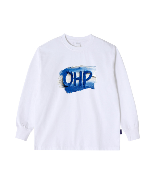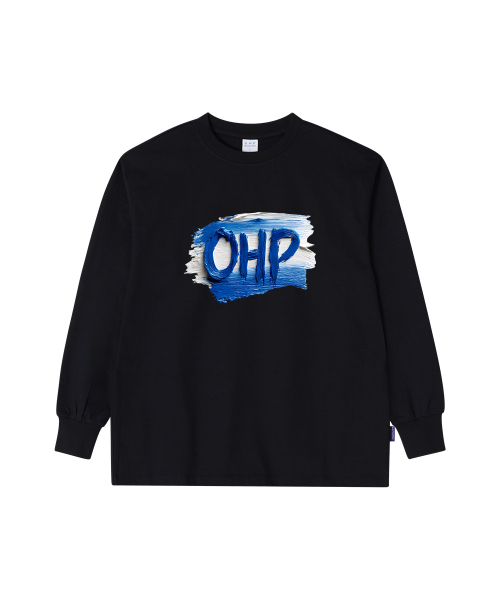 OHP 블루페인트 크루넥 긴팔티셔츠