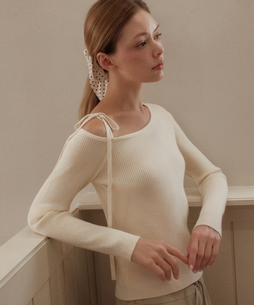 [레이어드/데일리] 디스트로이드 시어 카라 니트 (IVORY)