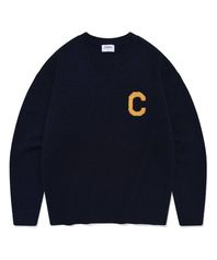 미들 C 로고 크루넥 니트 네이비