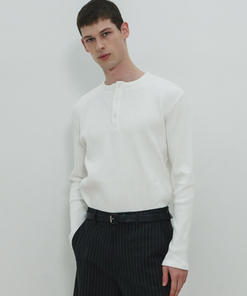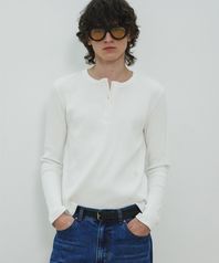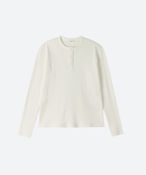 UNISEX, Henley Neck Ribbed T-shirt / White
