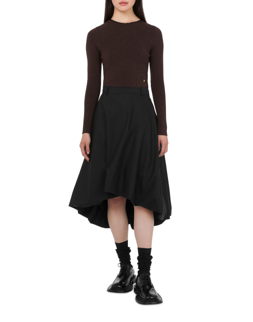 언발 펌킨 플레어 코튼 미디 스커트